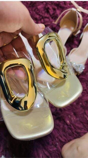 SEO Description: Elegant transparent block heel sandals with golden hardware. Comfortable slip-on design, sizes 36-41. Perfect for parties and special occasions. Shop now at StepZone!
