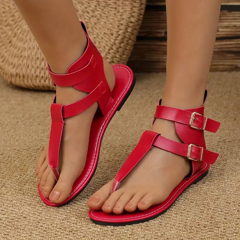 SEO Title: Double Buckle Gladiator Sandals for Women - T-Strap Flat Sandals | StepZone